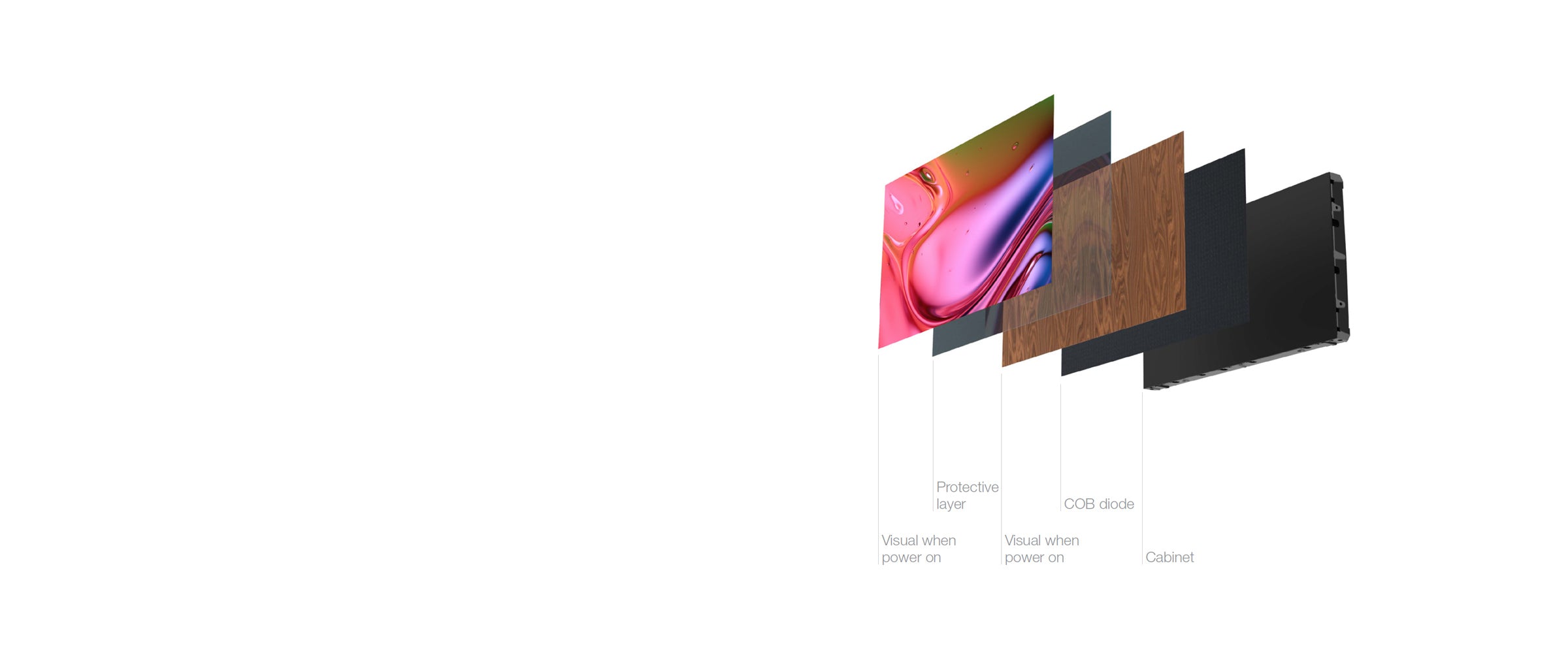 Built with advanced COB packaging and textures like wood, tile, or metal, this display doubles as a screen and a decorative element that blends into any space.