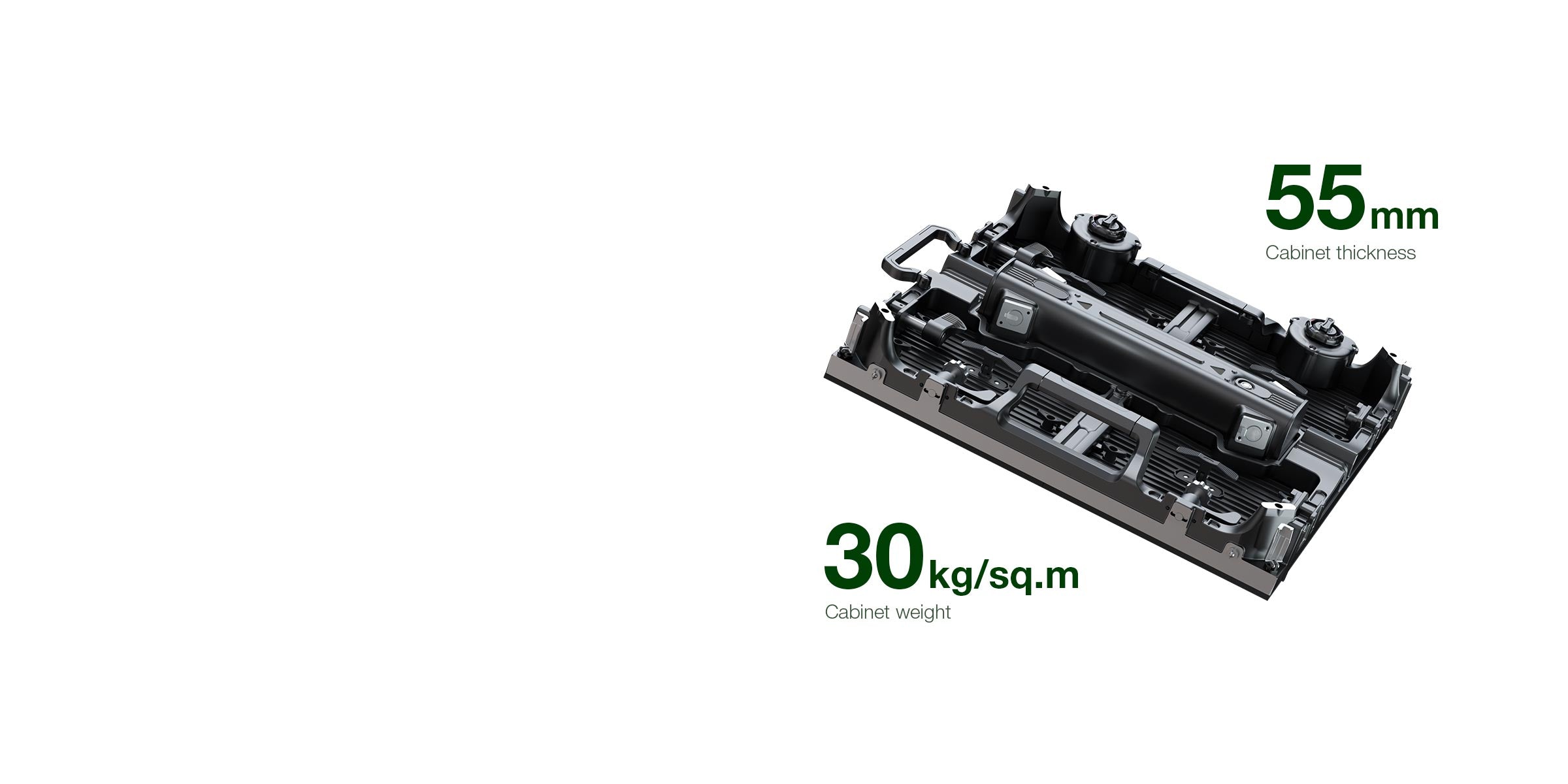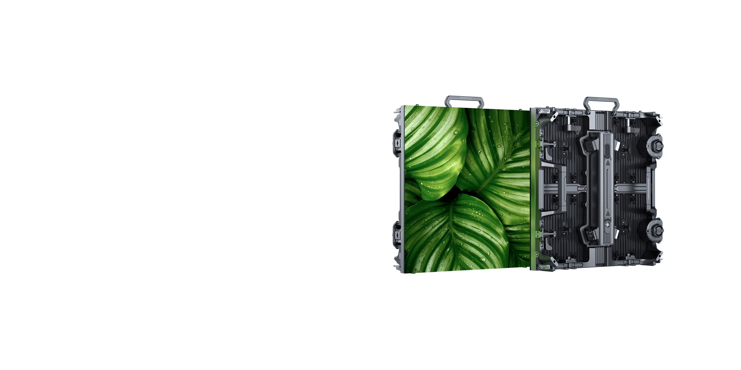 The cabinet connects magnetically to the module, allowing front and rear access without the need for screws. It minimizes light reflection, delivering a flawless pixels.